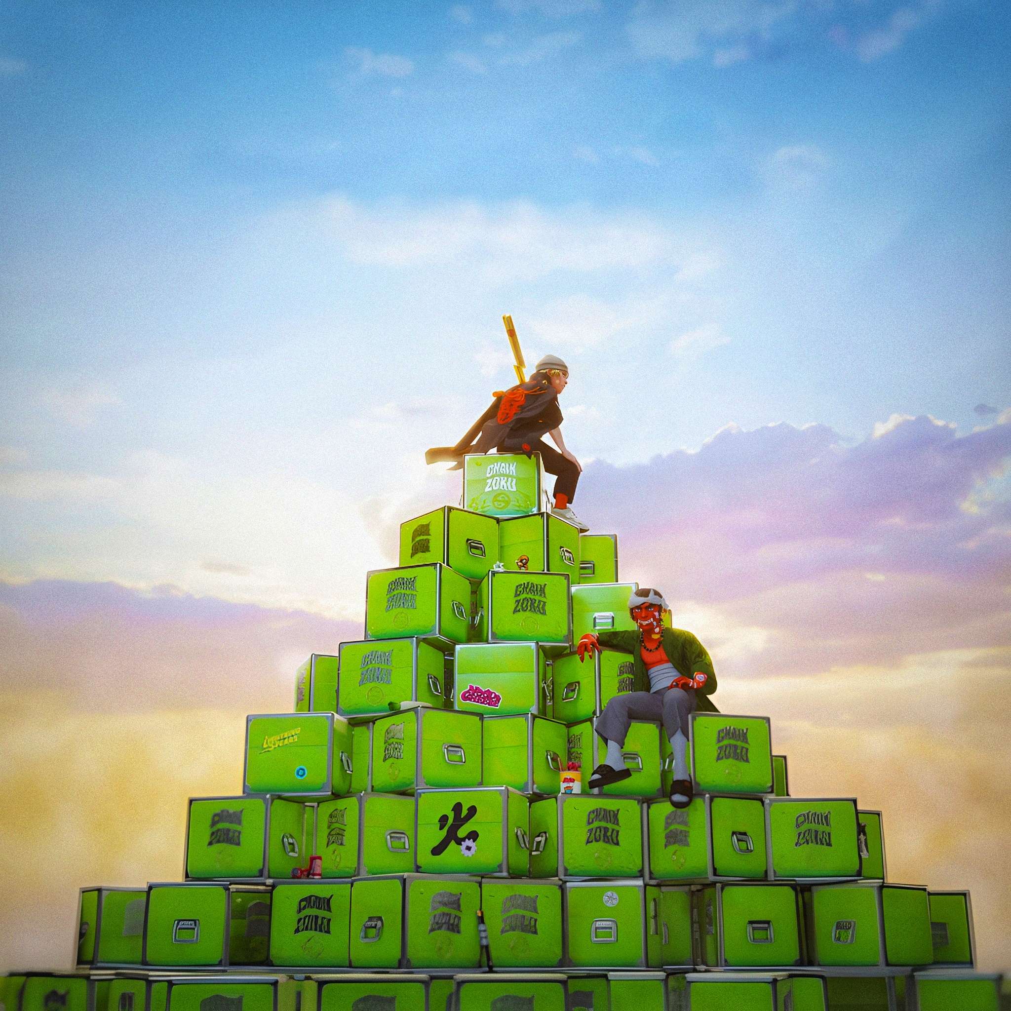 999 Gimme the Loot boxes minted (for free) by the early ChainZoku Discord community. They were used as part of the Zoku minting process; however, many boxes remain unopened today. They can now be bought on Opensea at: <https://opensea.io/collection/gimmetheloot>